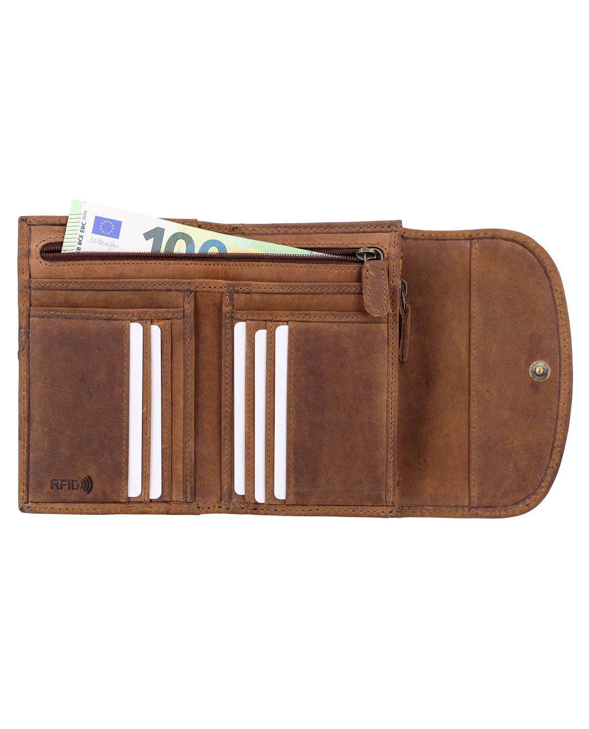 Grâce à la technologie de protection RFID intégrée, le portefeuille "Bryanna" protège vos cartes de manière fiable contre toute lecture non autorisée. Un point fort particulier est le petit compartiment à monnaie, spécialement conçu pour une pièce de 1 € – idéal pour avoir toujours votre chariot de courses à portée de main. Le cuir marron élégant confère au portefeuille non seulement un aspect raffiné, mais en fait également un compagnon durable et fonctionnel pour tous ceux qui apprécient à la fois le style et la sécurité.