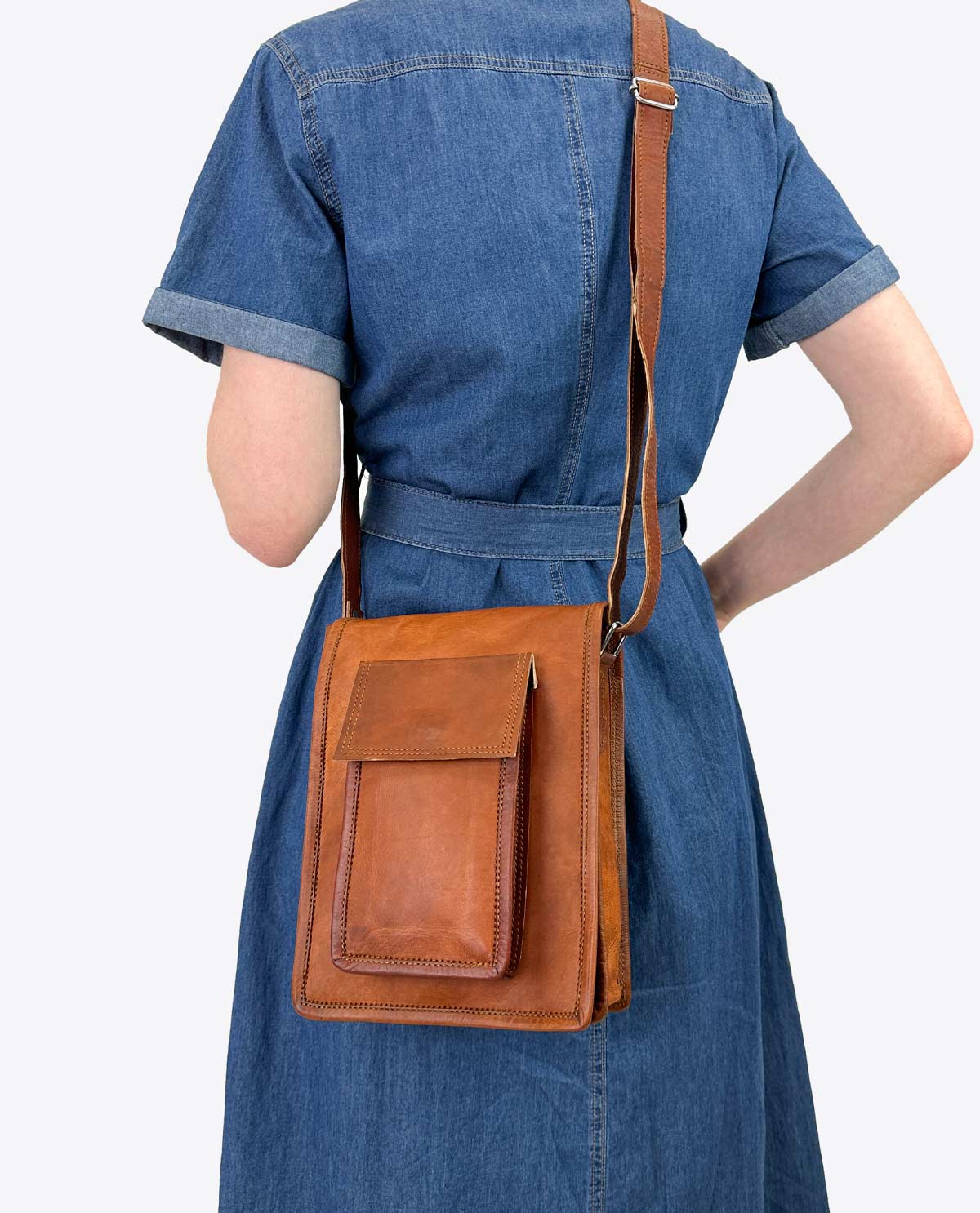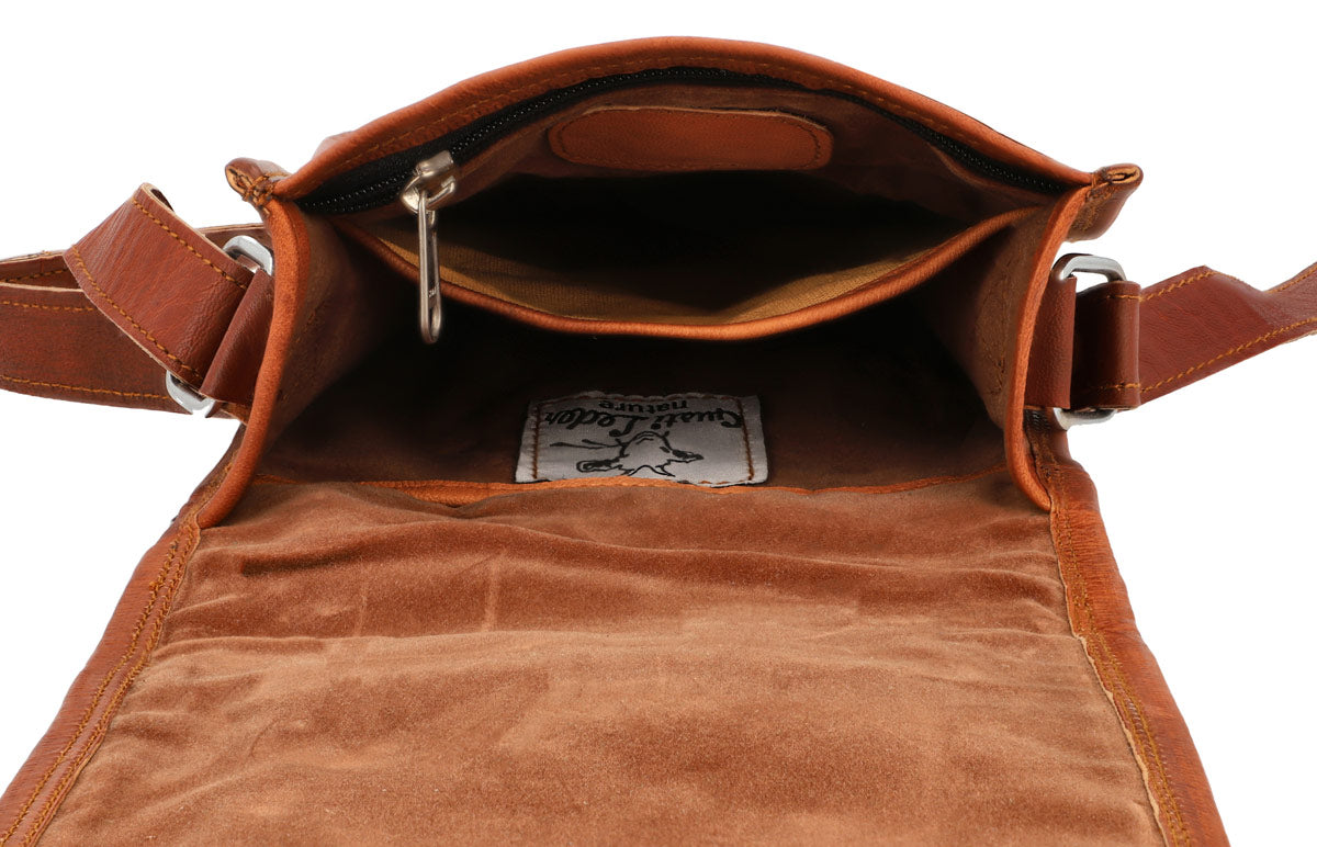 Notre sac en cuir est fabriqué à partir de cuir tanné végétal de haute qualité. Le marron chaud confère au sac une élégance classique qui s'accorde avec chaque tenue. Le travail soigné et les coutures robustes garantissent une longue durée de vie et en font votre compagnon fidèle au quotidien.