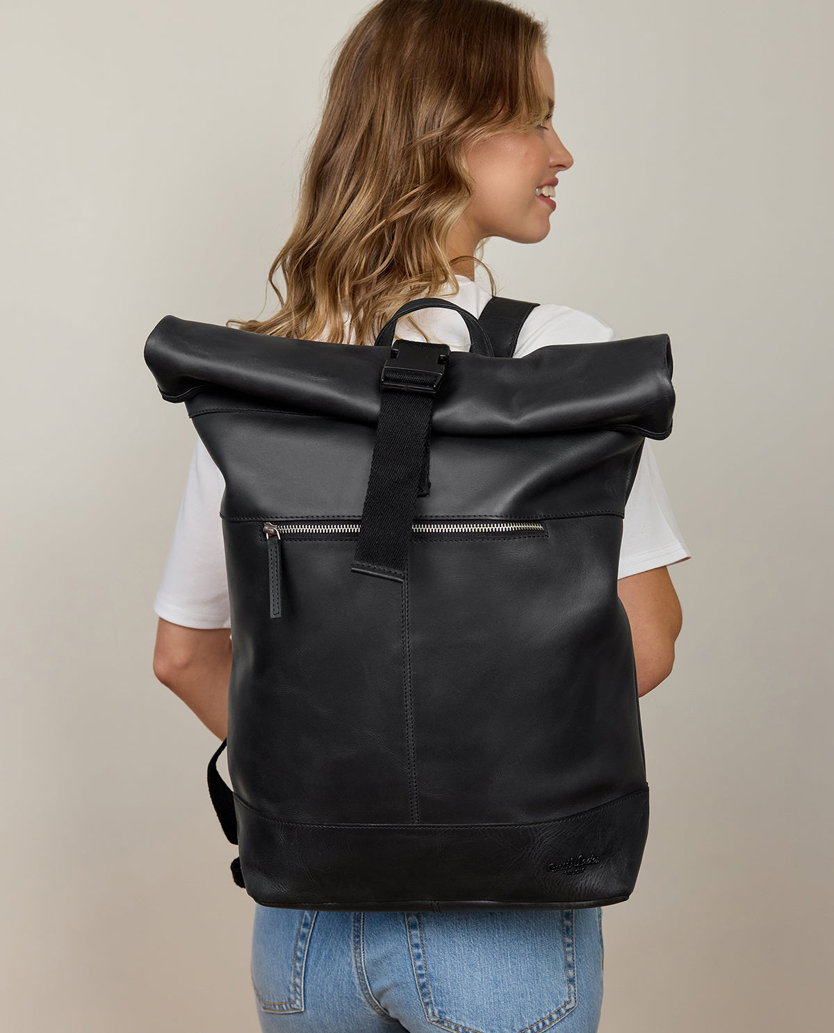 Sac à dos Rolltop Sac à dos de ville Vintage Noir Cuir 20L