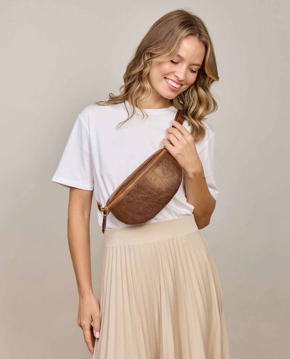 Sac Banane Ceinture Fanny Pack Sac Bandoulière Femmes Marron Verni Cuir - Made in Italy