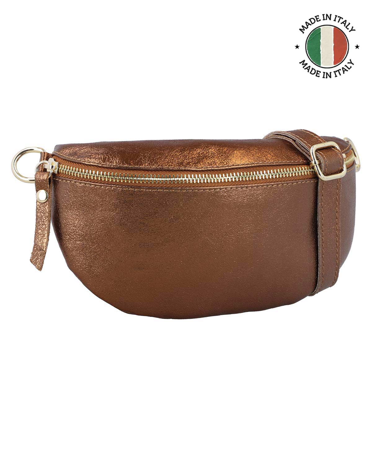 Sac Banane Ceinture Sac Bandoulière Femmes Marron Verni Cuir - Made in Italy