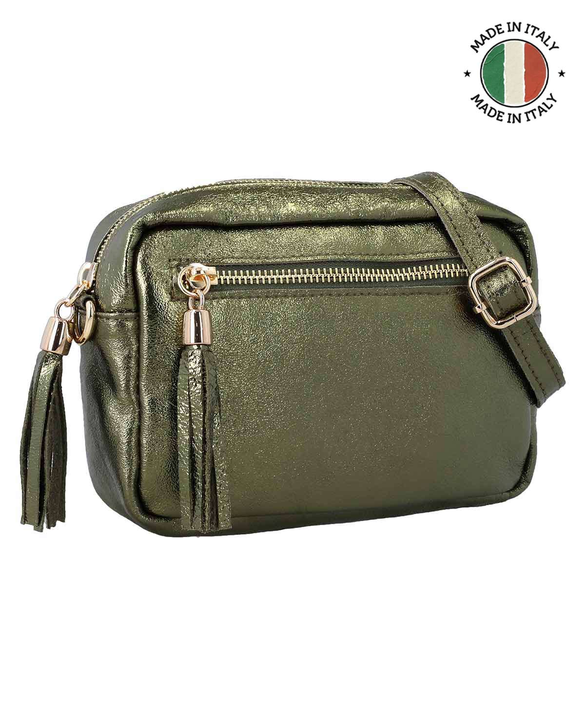 Le sac bandoulière "Cariba" en cuir de haute qualité est le compagnon idéal pour toute femme qui apprécie à la fois le style et l'utilité pratique. La fermeture éclair sécurisée protège de manière fiable vos objets de valeur, tandis que le pendentif élégant sur la fermeture ajoute une touche particulière au sac. À l'intérieur, vous trouverez une doublure en tissu clair et finement structurée, qui non seulement a un aspect raffiné, mais vous permet également d'avoir une vue d'ensemble claire de vos essentiels. De plus, vous y trouverez un discret logo "Made in Italy" finement embossé ainsi qu'un patch gravé intégré, offrant de l'espace pour votre dédicace personnelle. Ainsi, "Cariba" devient un accessoire qui est non seulement beau, mais aussi personnel.