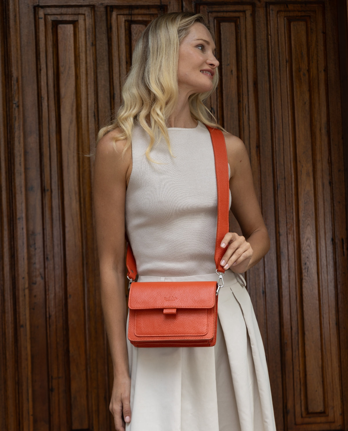 Le sac à bandoulière «Trude » allie élégance intemporelle et fonctionnalité bien pensée et t'accompagne fidèlement au quotidien. Fabriqué en cuir de haute qualité et rehaussé d'un discret logo « Made in Italy », il est synonyme de qualité et de style. Sa silhouette épurée avec rabat magnétique lui donne un look sobre et élégant. Grâce à sa bandoulière en cuir réglable et amovible, tu peux porter « Trude » à l'épaule ou en bandoulière, selon ce qui te convient le mieux.