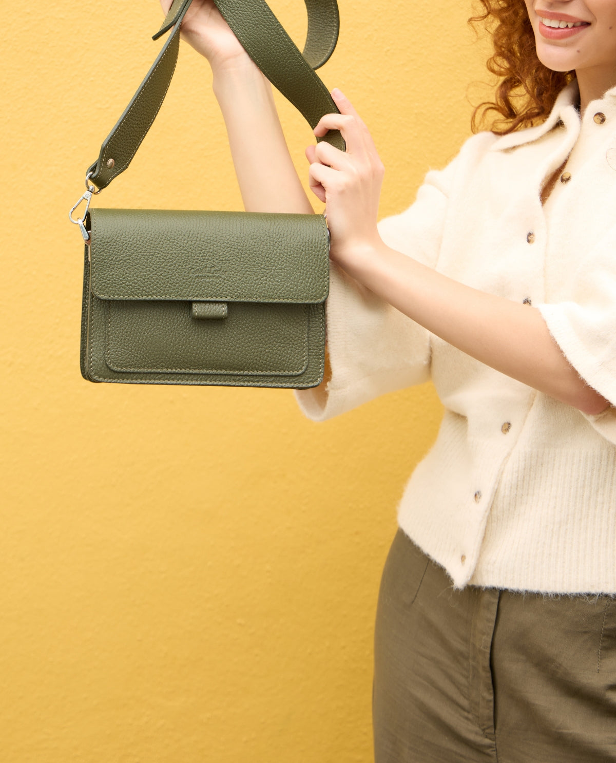 Le sac à bandoulière «Trude » allie élégance intemporelle et fonctionnalité bien pensée et t'accompagne fidèlement au quotidien. Fabriqué en cuir de haute qualité et rehaussé d'un discret logo « Made in Italy », il est synonyme de qualité et de style. Sa silhouette épurée avec rabat magnétique lui donne un look sobre et élégant. Grâce à sa bandoulière en cuir réglable et amovible, tu peux porter « Trude » à l'épaule ou en bandoulière, selon ce qui te convient le mieux.