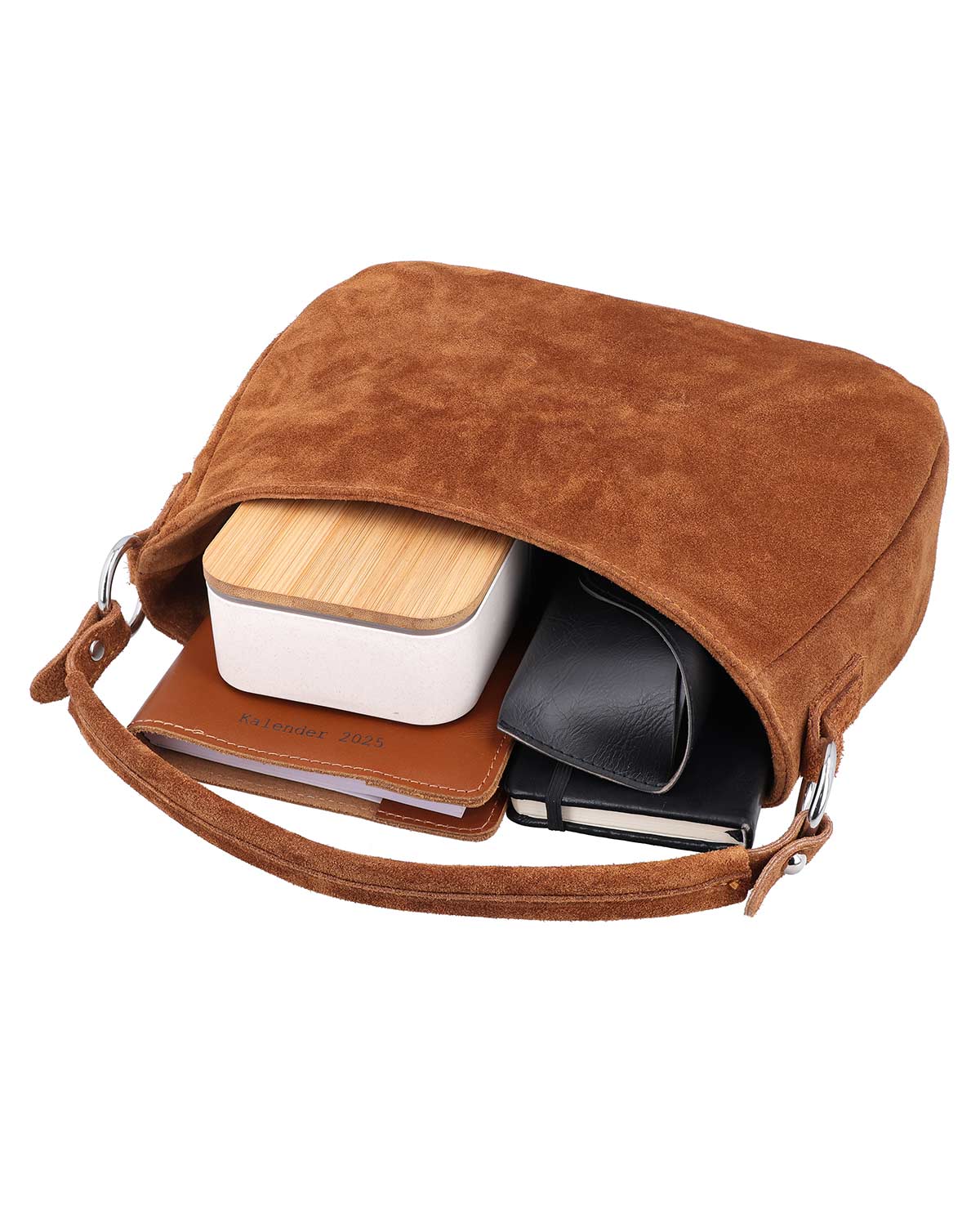 La "Marcella" offre non seulement du style, mais aussi un espace de rangement pratique pour tous tes essentiels. Elle dispose d'une poche zippée à l'arrière, qui te permet d'accéder rapidement aux objets importants, ainsi qu'une poche intérieure pour une sécurité supplémentaire. Le patch en cuir intégré à l'intérieur apporte une touche personnelle et complète parfaitement le design de haute qualité. Que ce soit pour le quotidien, le travail ou une soirée dehors – avec la "Marcella", tu as toujours tout ce dont tu as besoin à portée de main et dans un design élégant.