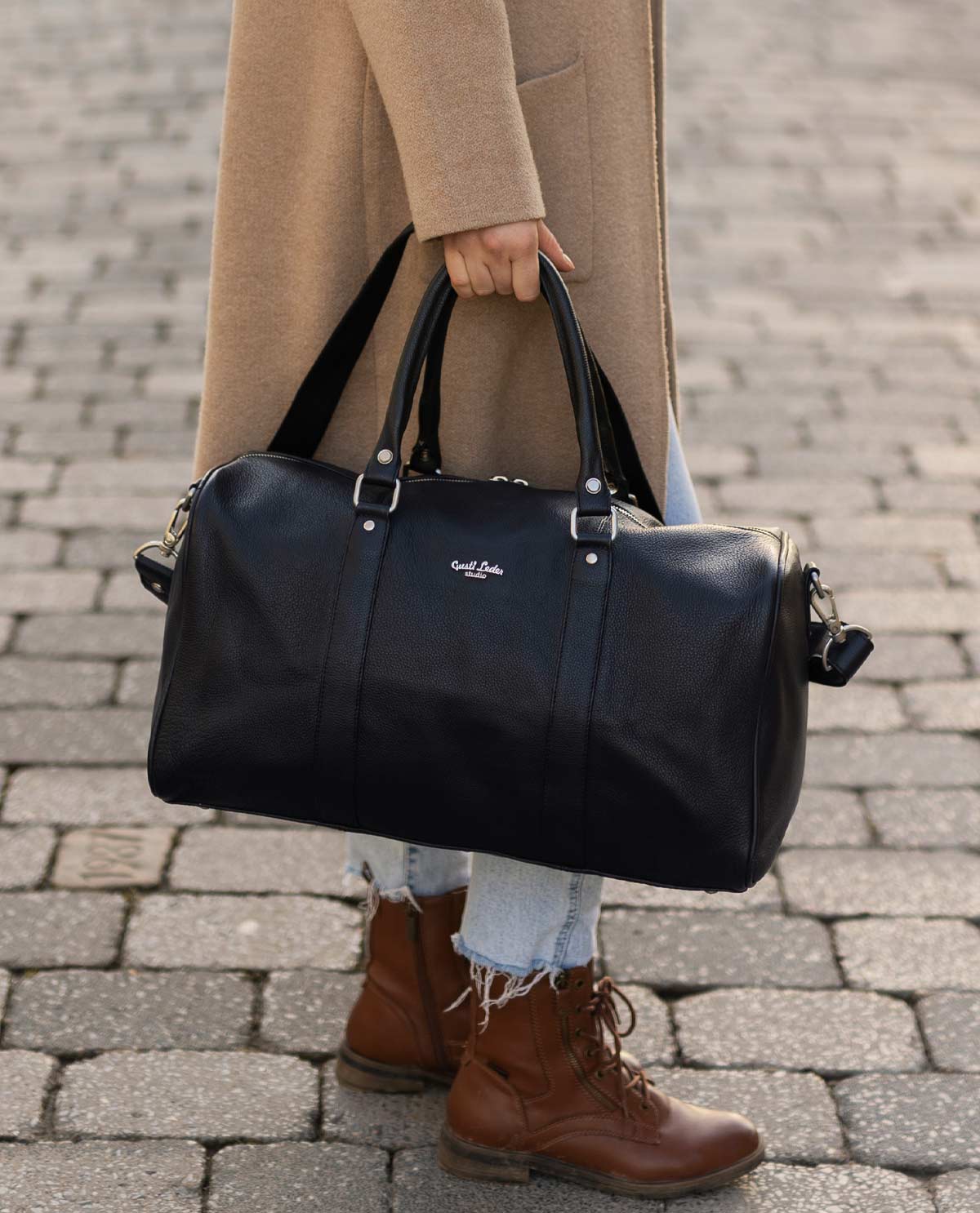 Sac de voyage Sac de sport Weekender Bagage à main Noir Cuir