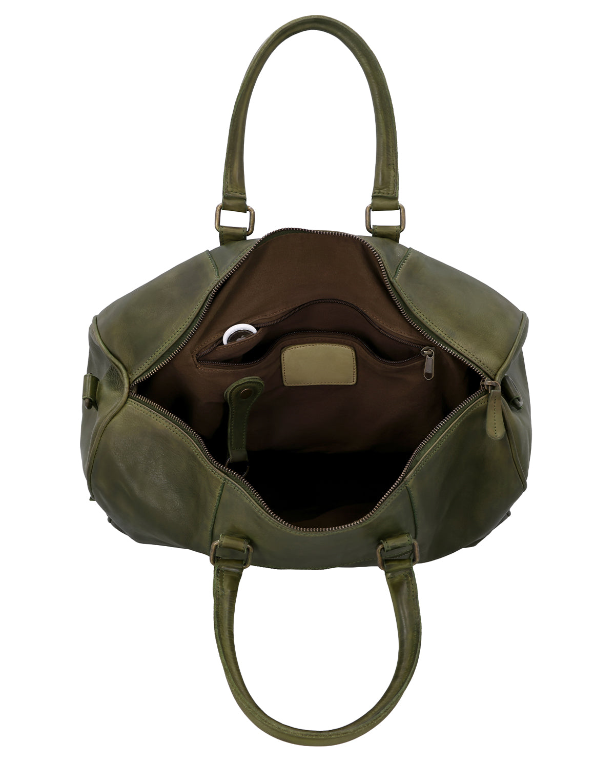 Le sac de voyage "Joris" en cuir vert est conçu pour les femmes et les hommes qui souhaitent garder une vue d'ensemble en déplacement. En tant que sac de voyage en cuir de haute qualité, il associe un design classique à des extras intelligents qui comptent vraiment en voyage. Un compartiment AirTag caché offre une sécurité supplémentaire, tandis qu'un porte-clés amovible garde vos affaires les plus importantes à portée de main. Particulièrement pratique, le compartiment séparé pour les affaires mouillées avec une doublure déperlante est idéal pour les vêtements portés qui doivent être rangés séparément. "Joris" est un sac en cuir qui crée de l'ordre et vous soulage de manière tangible en déplacement.