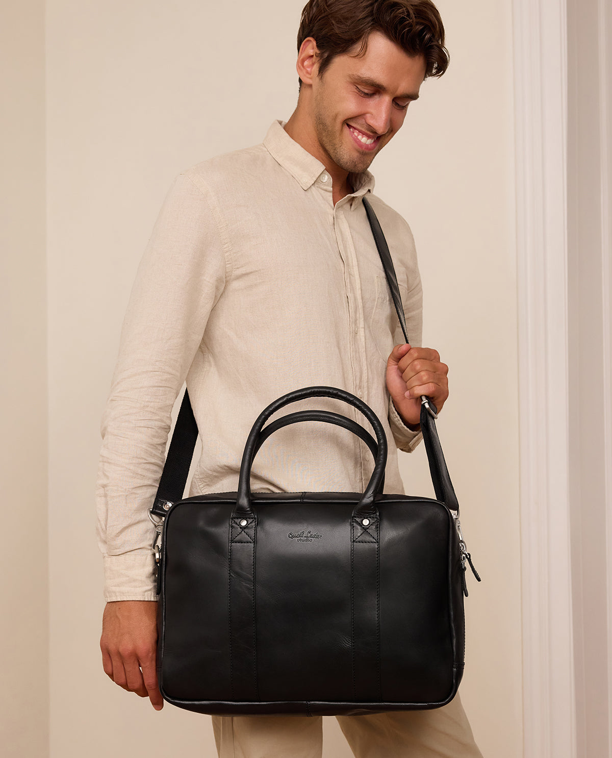 "Fynn" allie fonctionnalité et style - exactement ce qu'il faut pour les personnes décontractées qui ont pourtant tout sous contrôle. Le cuir de buffle de haute qualité assure un toucher agréable, une impression professionnelle et une apparence compétente et convient donc parfaitement aux voyageurs d'affaires et aux étudiants qui veulent certes paraître sérieux, mais pas trop basiques ou "lisses". De vraies personnalités - comme vous !