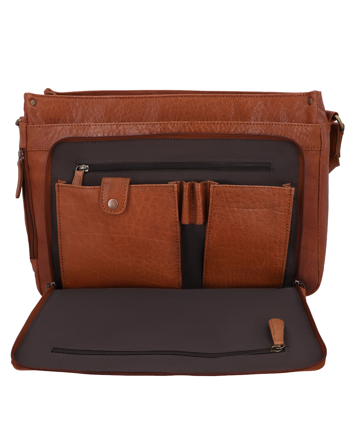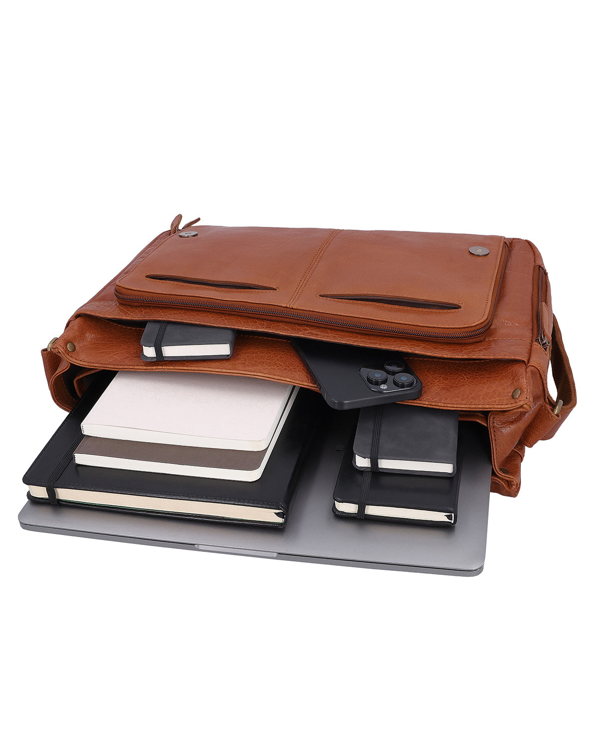 Deux poches extérieures et une grande poche extérieure avec fermeture éclair offrent un accès rapide aux documents et accessoires. À l'intérieur de ce compartiment, plusieurs poches zippées dissimulées, une poche à bouton-pression, une poche et deux porte-stylos assurent l'ordre. Un compartiment séparé pour ordinateur portable protège votre appareil de manière fiable, complété par une poche zippée dans le compartiment principal et une autre poche à l'arrière du sac. La bandoulière est réglable et s'adapte à votre quotidien, tandis que la fermeture magnétique permet une ouverture rapide et une fermeture sécurisée. Un patch gravé ainsi que le logo Gusti à l'intérieur et à l'extérieur complètent harmonieusement "Florin" en tant que sac d'affaires en cuir de haute qualité.