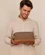 Il te manque encore la trousse de toilette idéale ? Fini les recherches ! Avec "Myra", tu peux ranger tout ce dont tu as besoin pour ton voyage, shampoing, brosse à dents et déodorant trouveront leur place. La combinaison de cuir et de toile t'offre le meilleur des deux mondes : d'un côté, les parties essentielles sont particulièrement stables et robustes, de l'autre, "Myra" est également très flexible. Ainsi, tu as toujours tous tes articles de toilette avec toi et tu es toujours stylé.