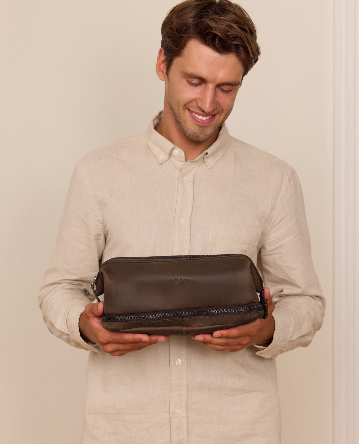 La trousse de toilette "Quinn" est votre compagnon idéal pour les voyages et les déplacements. Avec son esthétique en cuir de qualité et son design réfléchi, elle offre non seulement de la place pour vos produits de soin, mais ajoute également une touche élégante à vos bagages.